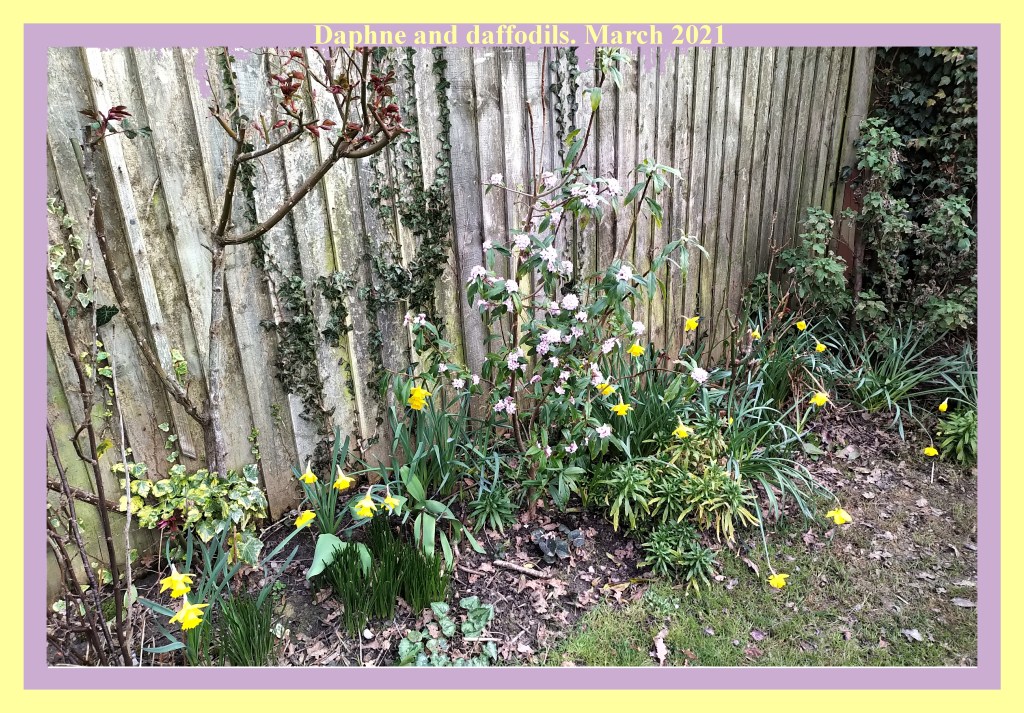 And finally, not from Wales, but my garden. It’s a pity I can’t post the scent of the daphne bush. It’s wonderful. This was last year, and it’s even better this year.