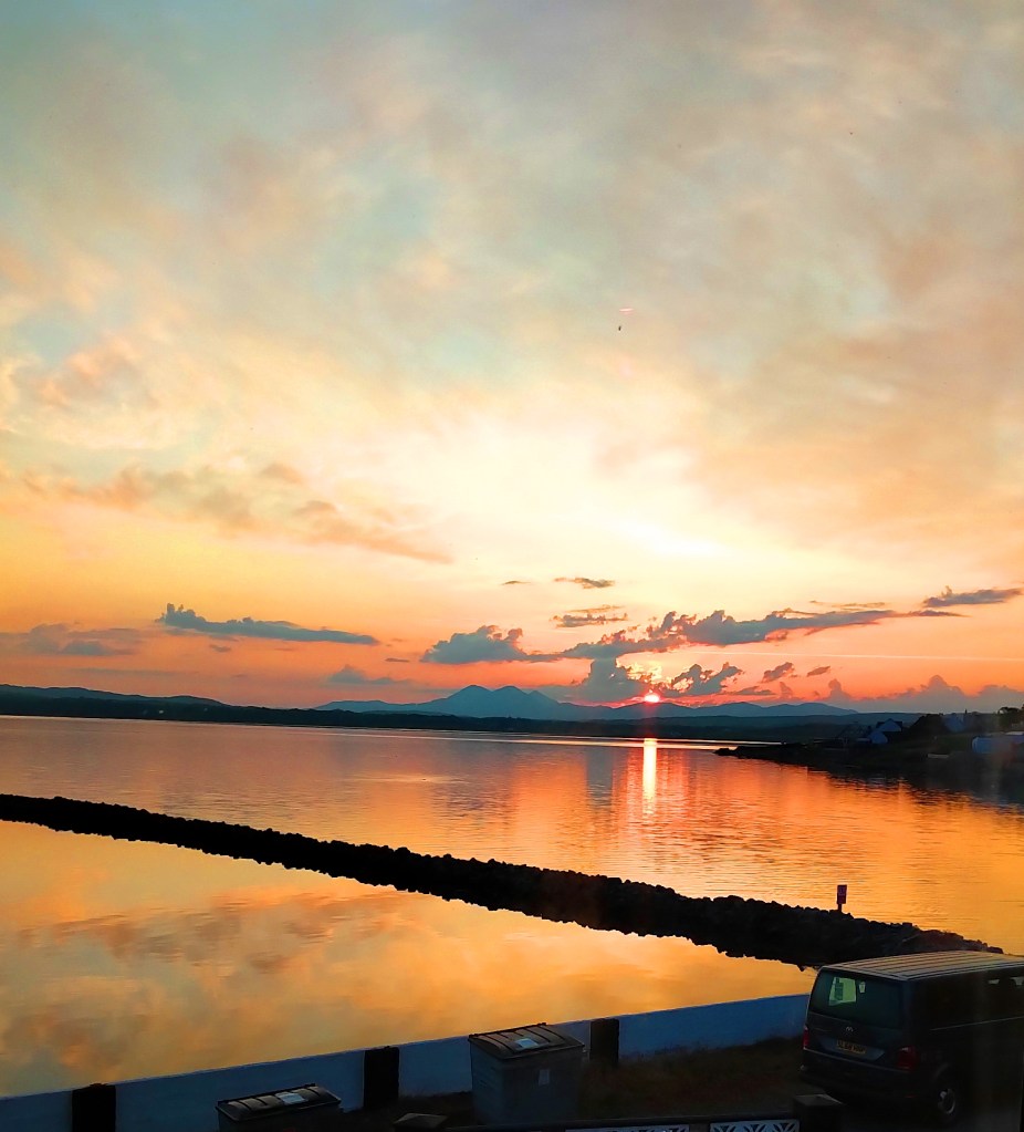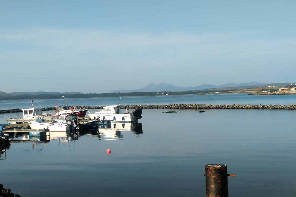 On the day of our return to the mainland, we had to get up very early. Our ferry left at 6:50 and it was about a 20 minute drive. We’d ordered a taxi for 6:15, so were up at just before 5:45. What a sight greeted our eyes. A wonderful sunrise over the Paps of Jura.
